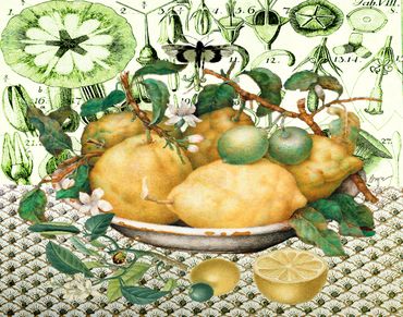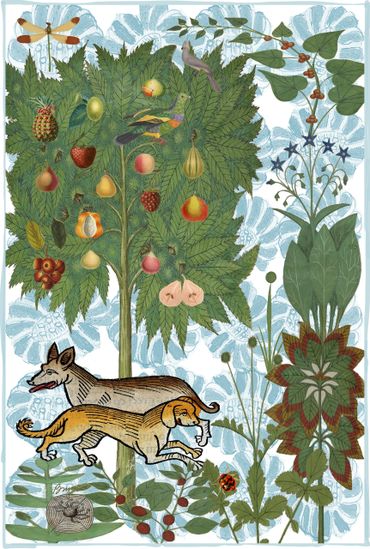 The Orto Botanico, the Renaissance garden of the medical school of Padua, Italy, inspired the map pictures that incorporated ancient maps with vibrant botanicals. Founded in 1545, it is the oldest university medicinal garden in the world, and it is still in its